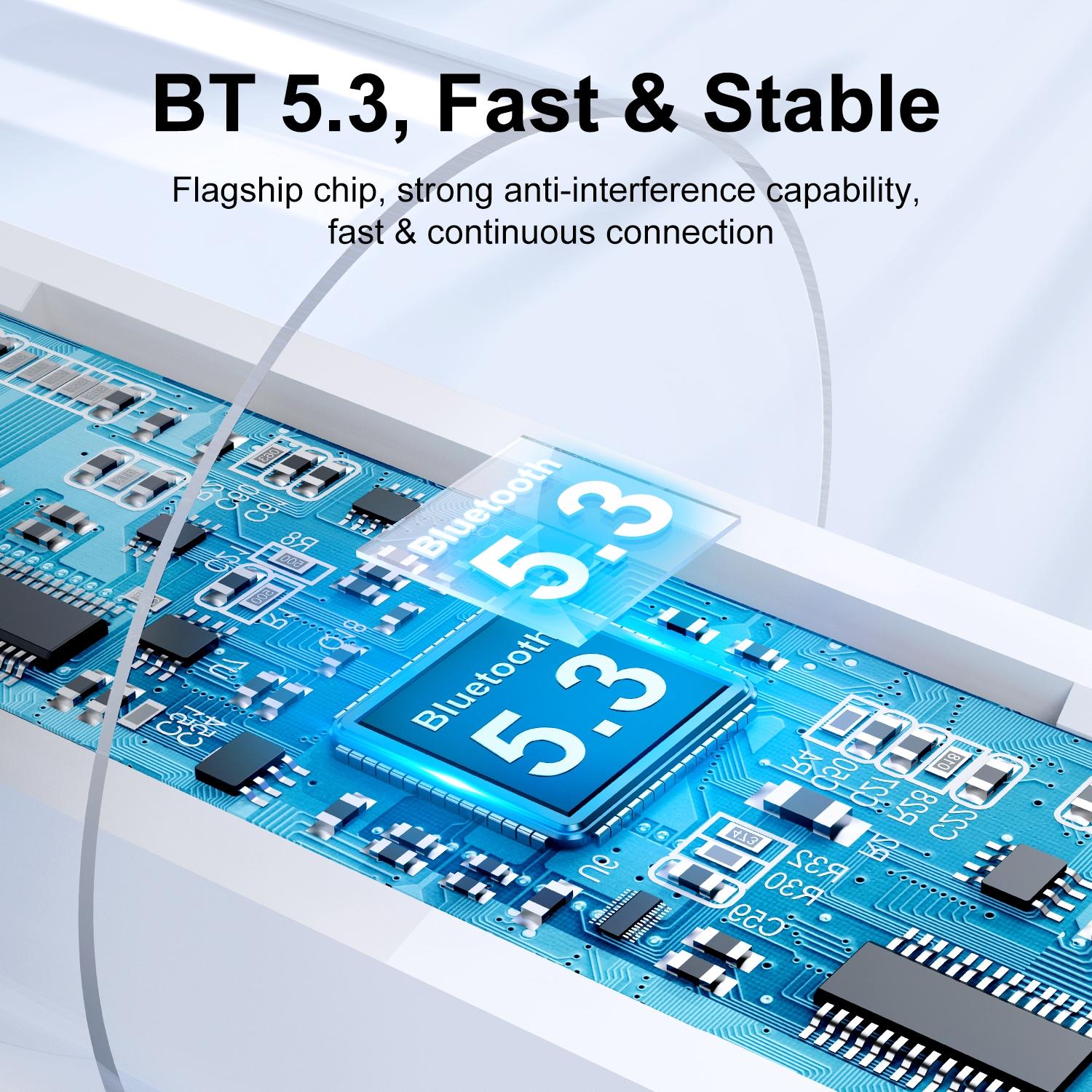• BT 5.3 flagship chip for improved anti-interference ability and fast, continuous connection